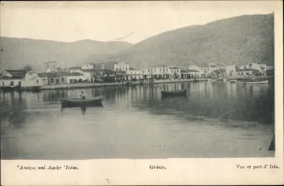 Ak Itea Griechenland, Ansicht vom Hafen, Boote