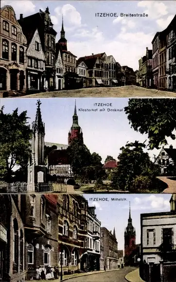 Ak Itzehoe in Holstein, Breitestraße, Klosterhof, Denkmal, Mittelstraße