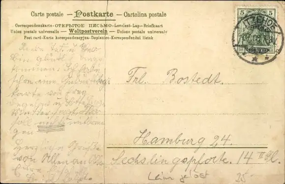 Zustand, siehe Scan, gelaufen, 1908 - ca 14 cm X 9 cm