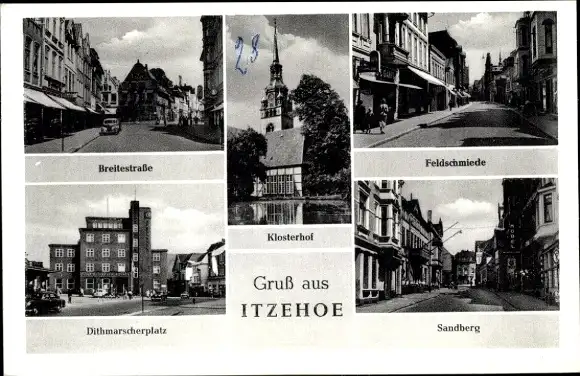 Ak Itzehoe in Holstein, Klosterhof, Breitestraße, Feldschmiede, Sandberg, Dithmarscherplatz