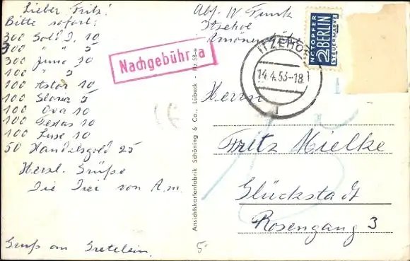 Zustand, siehe Scan, gelaufen, 1953 - ca 5 cm X 3 cm