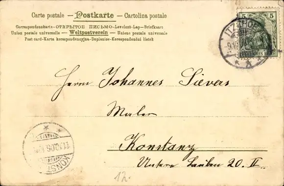 Zustand, siehe Scan, gelaufen, 1905 - ca 14 cm X 9 cm