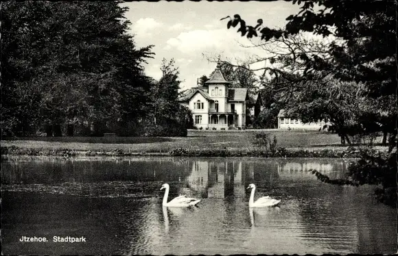 Ak Itzehoe in Schleswig Holstein, Schwäne auf dem See im Stadtpark