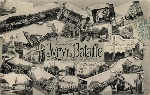 Ak Ivry la Bataille Eure, Vue générale, porte, Kriegerdenkmal, Hafen, Obelisk