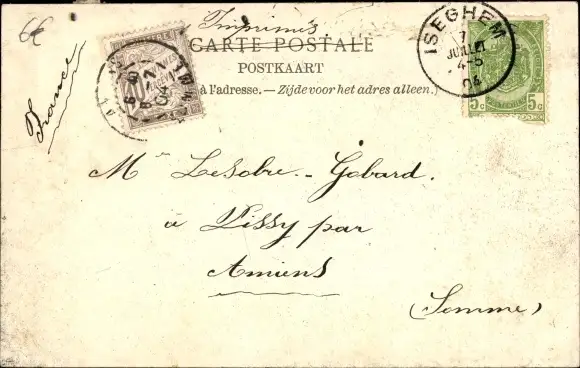 Zustand, siehe Scan, gelaufen, 1904 - ca 14 cm X 9 cm