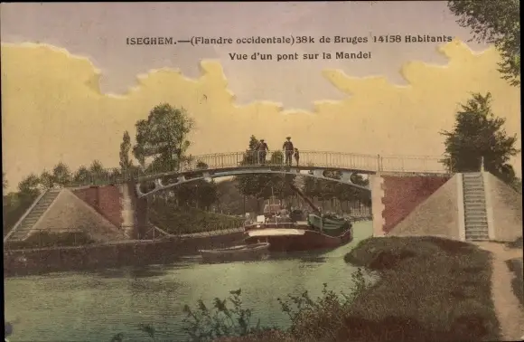Ak Izegem Iseghem Westflandern, Vue d'un pont sur la Mandel, Lastkahn