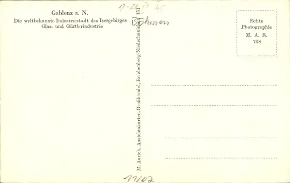 Ansichtskarte, Postkarte, Straßenbahn, Straßenbahnen, Tram, Gablonz, Jablonec nad Nisou