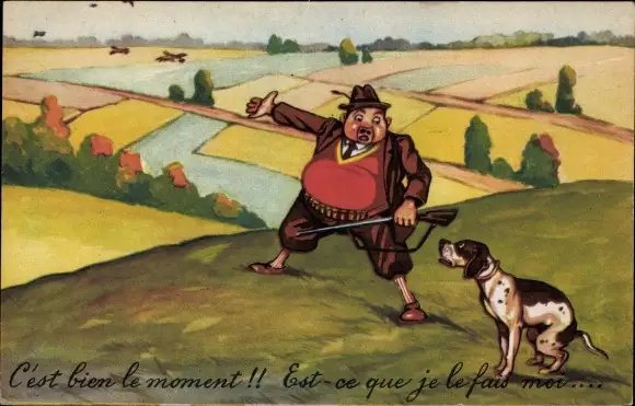 Ak Jäger, Hund macht ein Häufchen im falschen Moment