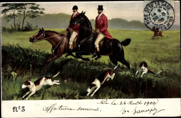 Ak Jagd, Männer zu Pferde, Hürde, Jagdhunde