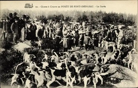 Ak Jagd im Wald von Fontainebleau, Jagdgesellschaft, Hundemeute