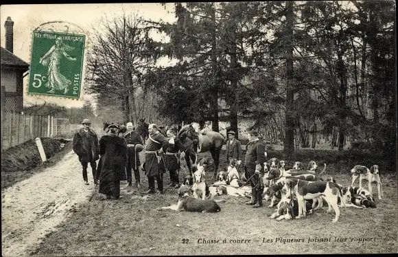 Ak Jagdmotiv, Jagdgesellschaft, Hundemeute