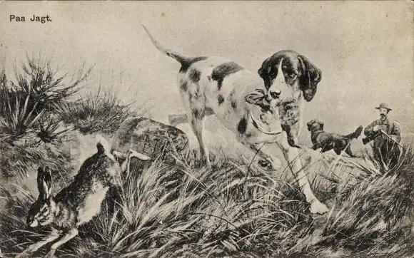 Ak Jagdszene, Jagdhund, Jäger, Jagdbeute