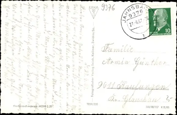 Zustand, siehe Scan, gelaufen, 1967 - ca 14 cm X 9 cm