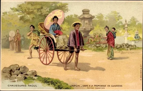 Ak Japan, Dame auf einem Spaziergang in Djiurieka