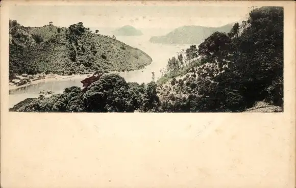Ak Japan, Fluss, Wälder, Tal, Gesamtansicht