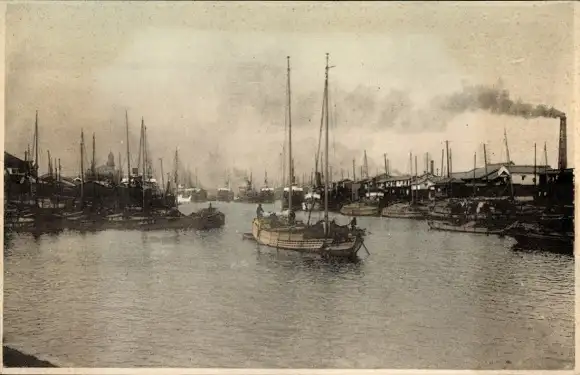 Ansichtskarte, Postkarte, Hafen, Schiffe, Boote, Dampfer, Boot