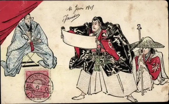 Ak Japan, Japaner, Verlesung einer Schriftrolle