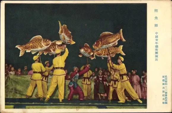 Ak Japan, Japaner auf einer Bühne, Theaterszene, Fische