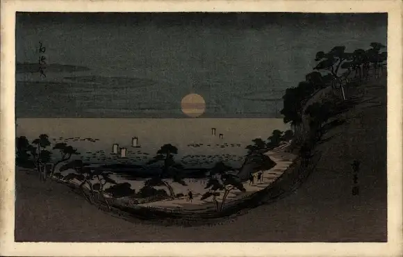 Ak Japan, Küste, Sonnenuntergang, Segelboote