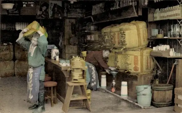 Ak Japan, Laden mit Fässern