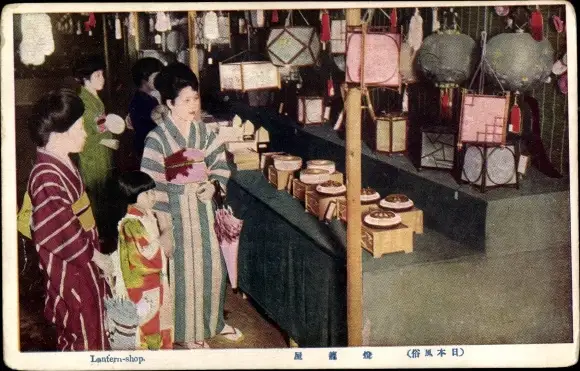Ak Japan, Lantern shop, Japanerinnen, Kimonos