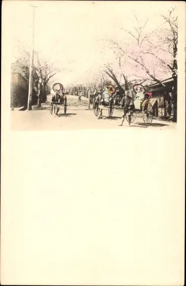 Ak Japan, Rikscha-Fahrer, Straßenpartie