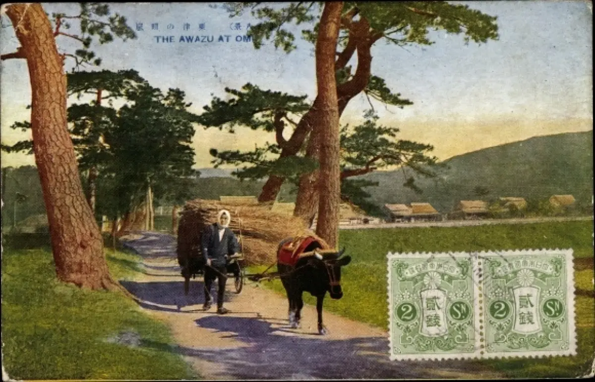 Ak Japan, The Awazu, Japaner, Rinderkarren