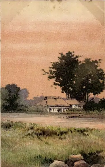 Ak Japan, Wohnhäuser, Fluss, Bäume