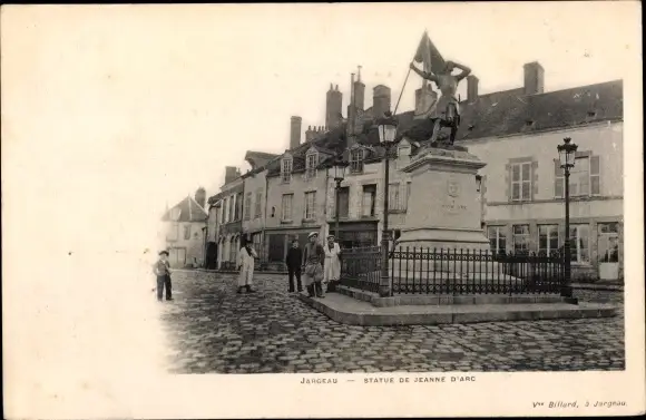 Ak Jargeau Loiret, Statue de Jeanne D'Arc