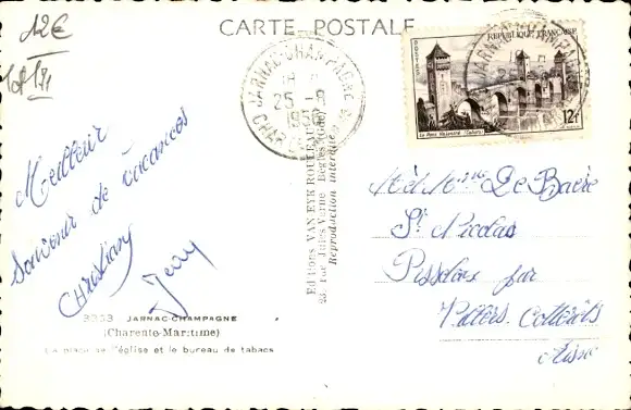 Ak Jarnac-Champagne Charente-Maritime, La Place de l’Eglise, der Tabakladen