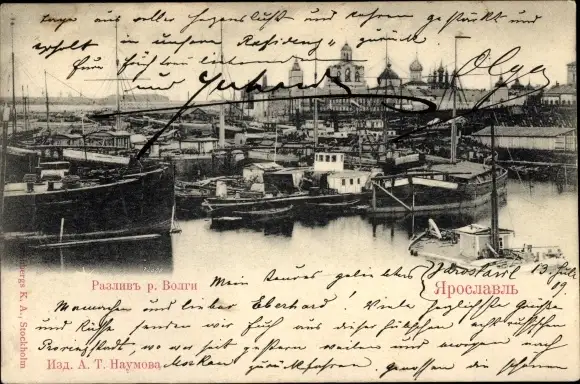 Ak Jaroslawl Russland, Hafen, Schiffe auf der Wolga