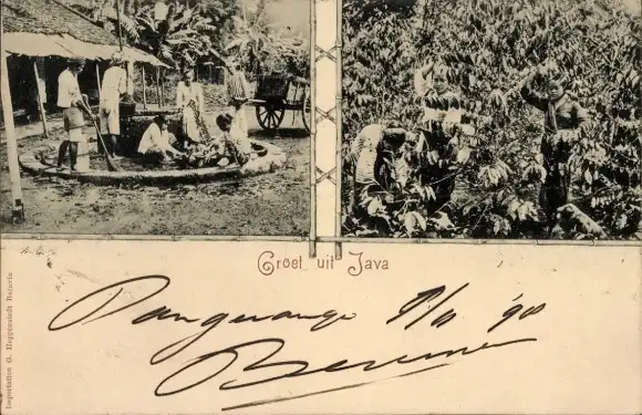 Ak Java Indonesien, Teepflücken und Trocknen