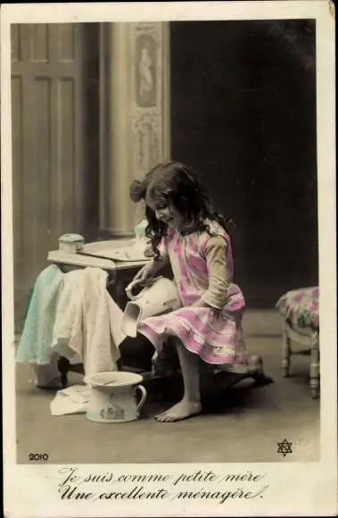 Ak Je suis comme petite mere, Mädchen mit Wasserkrug, Nachttopf