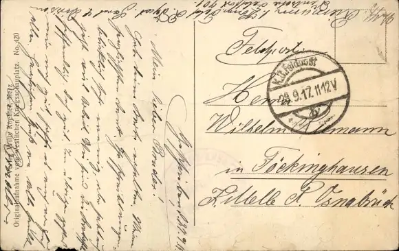 Zustand siehe Scan, 1917, gelaufen - ca 14 cm X 9 cm