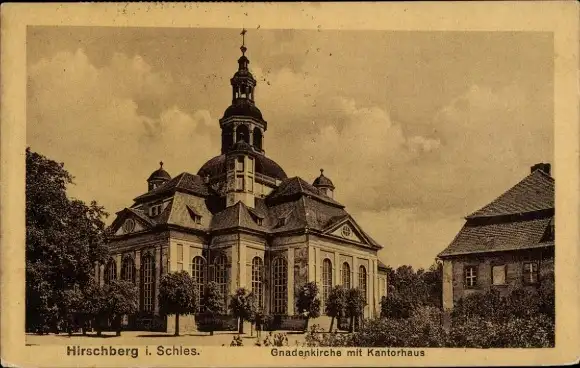 Ak Jelenia Góra Hirschberg Riesengebirge Schlesien, Gnadenkirche mit Kantorhaus