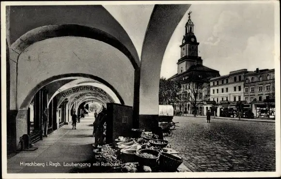 Ak Jelenia Góra Hirschberg Riesengebirge Schlesien, Laubengang, Rathaus