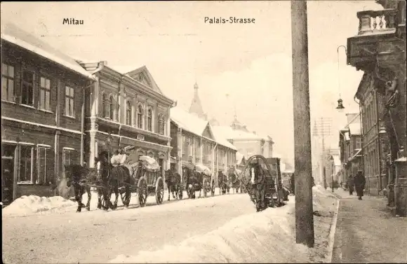 Ak Jelgava Mitau Lettland, Palais-Straße, Winteransicht