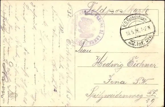 Zustand, siehe Scan, gelaufen, 1916 - ca 14 cm X 9 cm