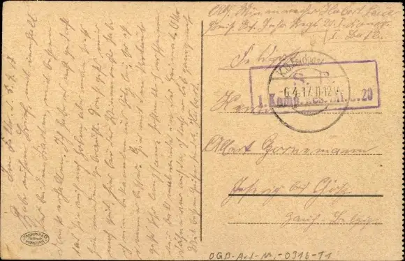 Zustand, siehe Scan, gelaufen, 1917 - ca 14 cm X 9 cm