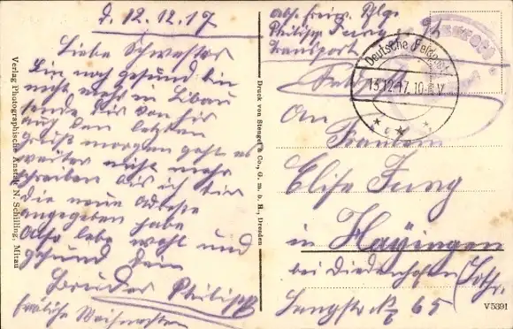 Zustand, siehe Scan, gelaufen, 1917 - ca 14 cm X 9 cm
