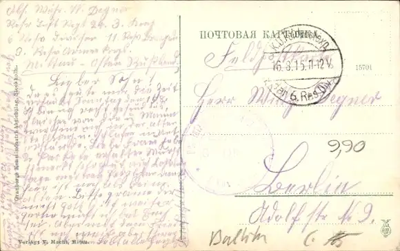 Zustand, siehe Scan, gelaufen, 1915 - ca 14 cm X 9 cm