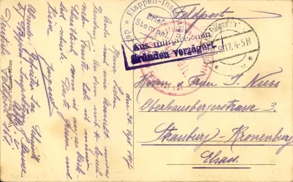Zustand, siehe Scan, gelaufen, 1917 - ca 14 cm X 9 cm
