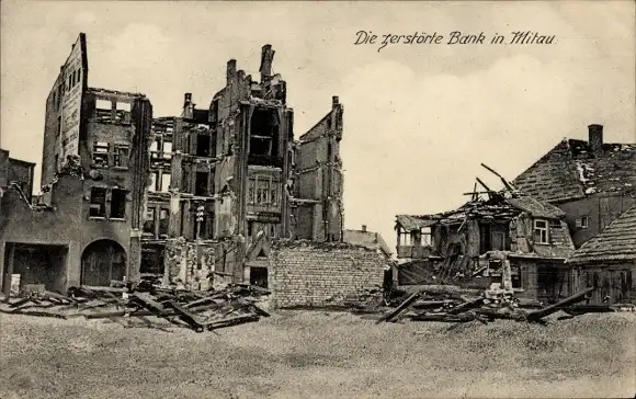 Ak Jelgava Mitau Lettland, Zerstörte Bank, I. WK