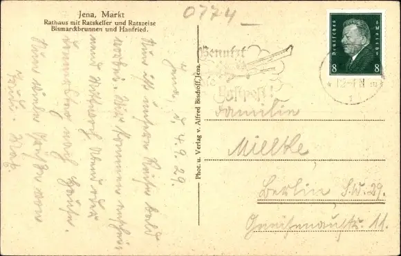 Ak Jena, Marktplatz, Rathaus, Bismarckbrunnen, Hanfried