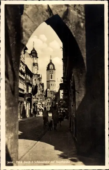 Ak Jena in Thüringen, Blick durch das Johannistor auf die Stadtkirche