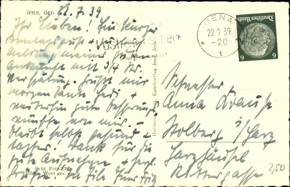 Zustand, siehe Scan, gelaufen, 1939 - ca 9 cm X 14 cm