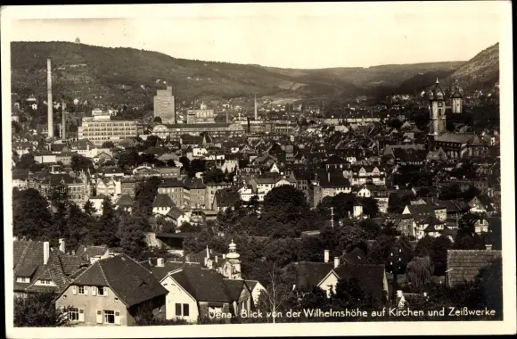 Ak Jena in Thüringen, Blick von der Wilhelmshöhe auf Kirchen und Zeißwerke, Panorama