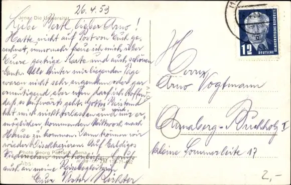 Zustand, siehe Scan, gelaufen, 1953 - ca 9 cm X 14 cm