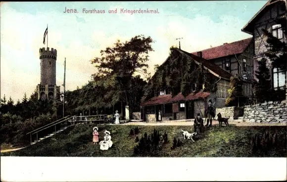 Ak Jena in Thüringen, Forsthaus und Kriegerdenkmal