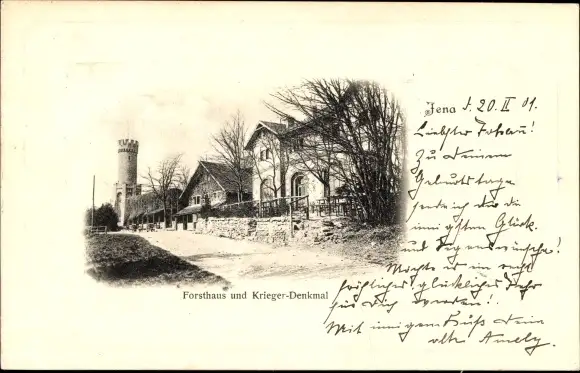 Ak Jena in Thüringen, Forsthaus und Kriegerdenkmal